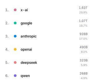 ÚLTIMA HORA: xAI está oficialmente a liderar o mercado de modelos de IA na OpenRouter.