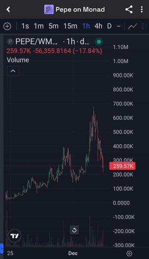 SOL'daki $PEPE 2,5 milyon dolardan 250 bin dolara düştü ve oradan da sıçradı. Sanırım @PepeOn_Monad de aynısını yapmak üzere. Biraz daha aşağı düşse bile, sonunda çok daha yüksek olur.
